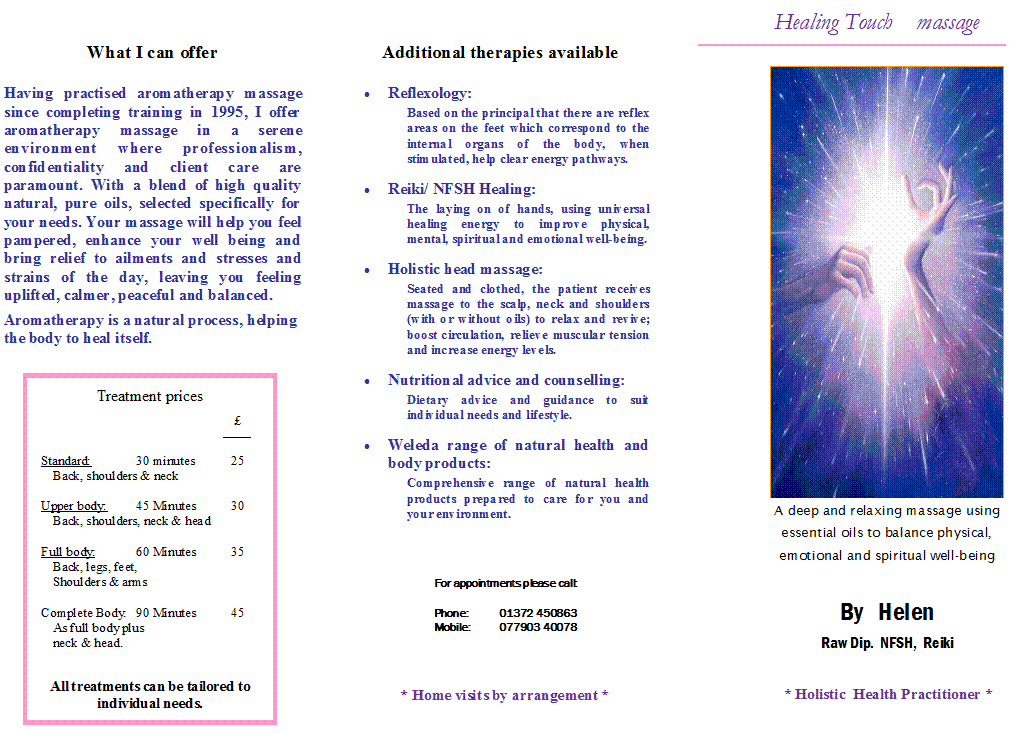 Healing Touch Massage A Deep and Relaxing Massage using essential oils to balance physical emotional and spiritual wellbeing.